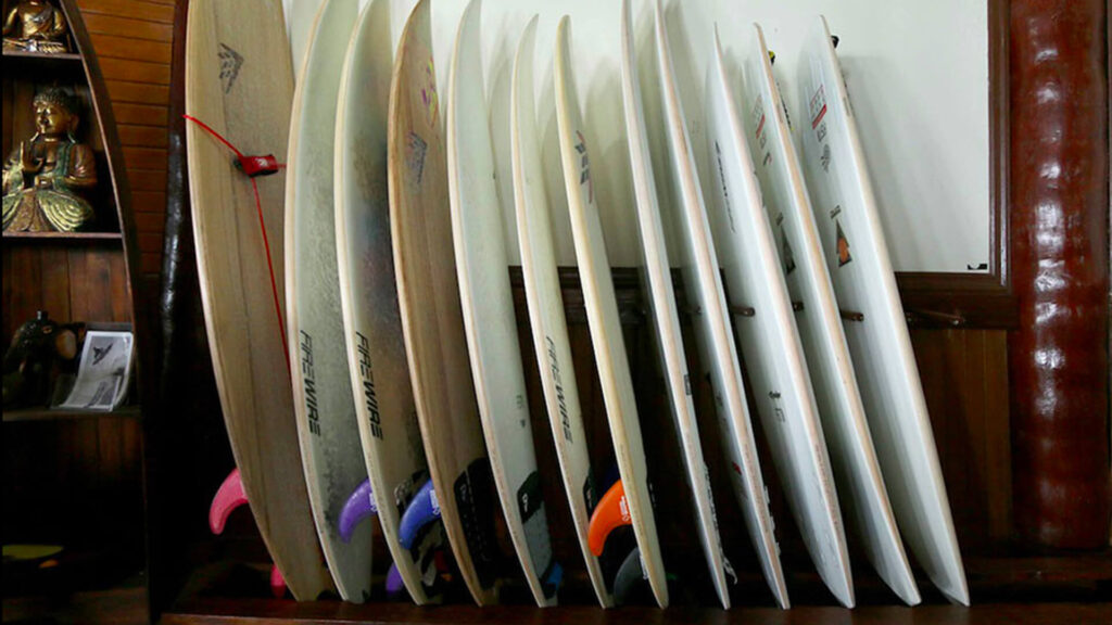 Firewire quiver available for rental. All boards, including leash and fins. Choose the model that suits you according to your habits and sea conditions. Older models are also offered for sale. We always try to have an assorted selection with 2-3 changes per year of new boards. Available boards: